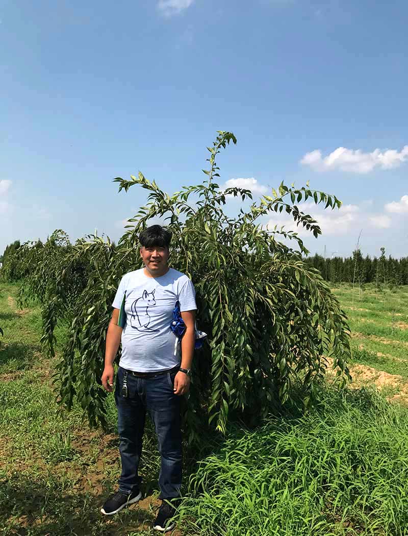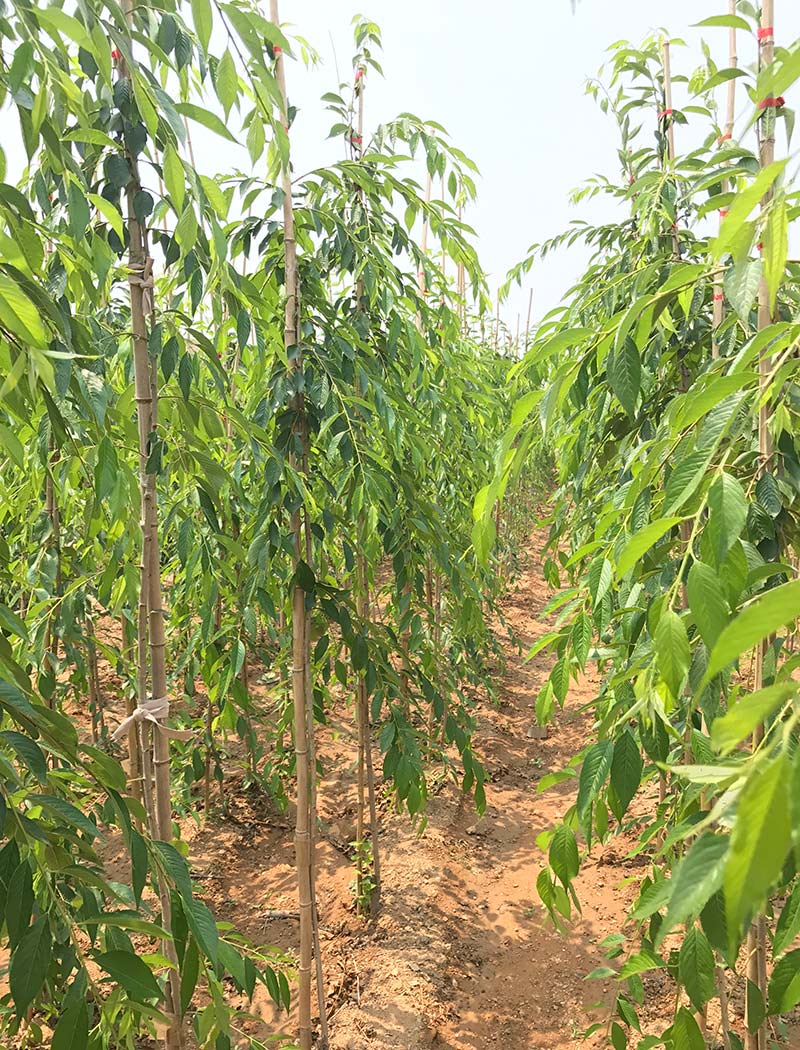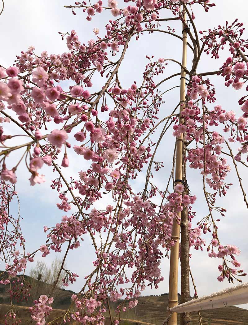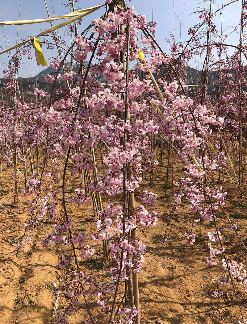 江戶彼岸櫻系的栽培品種。喬木,垂枝狀樹形。花先葉開放或近先葉開放,下垂,花徑2.0~2.6cm;花梗細長,有毛;萼筒壺形至短筒形,萼片近形或卵狀三角形,邊緣有鋸齒;花瓣15~25枚,淡紫紅色,橢圓形。日照市花期為4月中旬。